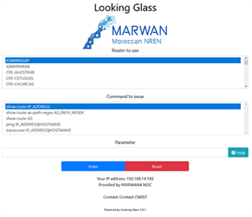 مرآة الشبكة أداة تسمح للمستخدمين بإلقاء نظرة على توجيه وسلوك الشبكة وهي تنشأ من الشبكة الأساسية. تقوم مرآة الشبكة لمروان بتنفيذ أوامر جس النبض أو تتبع التوجيه أو أحد أوامر العرض العديدة التي تتيح عرض جداول توجيه ميثاق الشبكات و ميثاق بوابة الحدود.